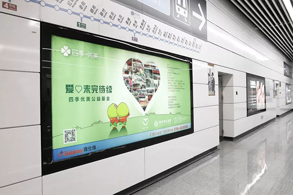 自5月20日起,四季優美“助學篇”燈箱公益廣告正式亮相深圳。20處廣告投放點遍布深圳市地鐵三號線田貝、翠竹、曬布、紅嶺、華新、少年宮、福田、購物公園、石廈9個站點,地鐵四號線龍華、福田口岸、福民、市民中心4個站點,全天展示,畫面簡潔素雅,華燈璀璨時刻更顯醒目。