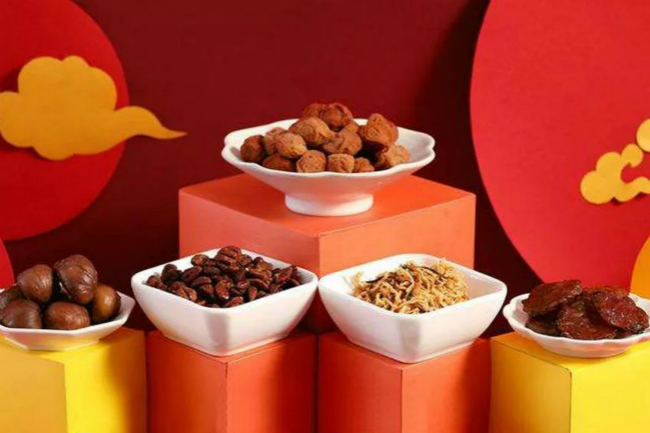 瓜子杏仁、糕點糖果、蜜餞飲料,傳統一點的零食年貨,家人早有準備。