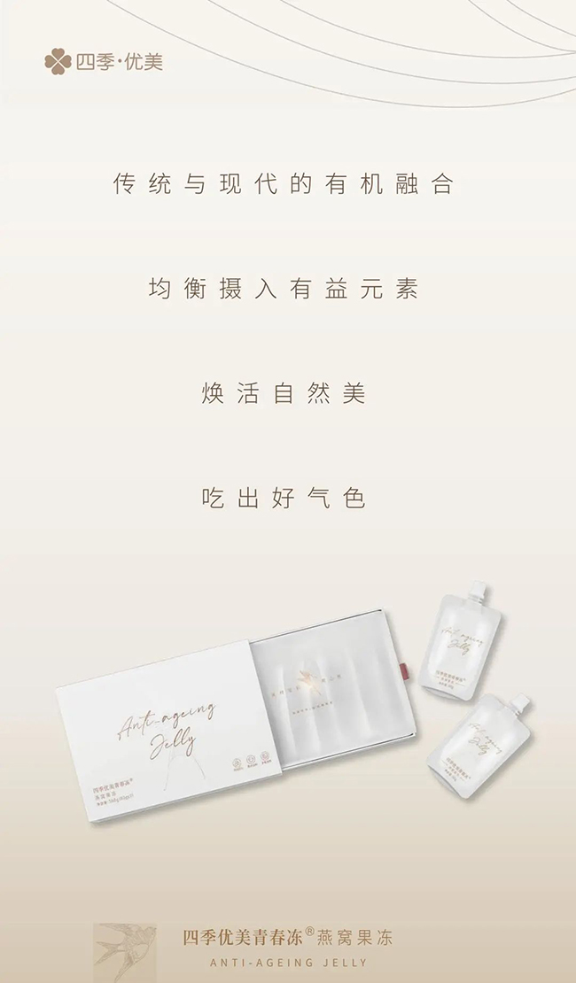 一盞燕窩就是一份貼心,一份暖意,帶給自己,也帶給最愛(ài)的人。秋燥時(shí)節(jié),四季優(yōu)美青春凍燕窩果凍與你一起,踩著時(shí)令的節(jié)點(diǎn),和自然的節(jié)奏同步,時(shí)刻保持蓬蓬勃勃的活力。