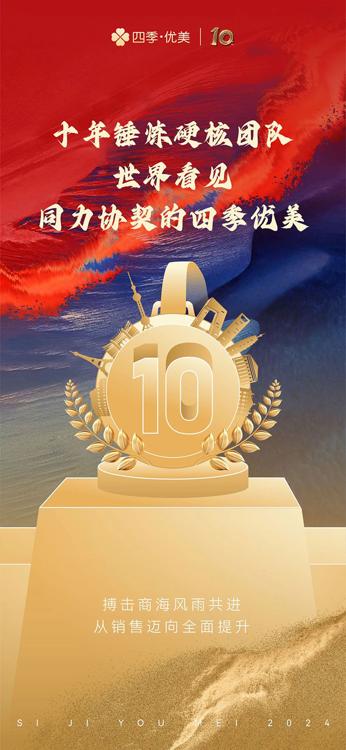 此刻,是2024年12月24日,既是舊歲尾聲,也是四季優美誕生十周年的紀念日。十年前的今天,一些恣意生長的夢想,一些按捺不住的沖動,一些無處抑制的不甘和倔強,聚成一團熊熊的火焰噴薄而出——而這,也變成了后來這一串創業故事的發軔。在歷史的長河中,十年或許只是須臾一瞬,但對于四季優美而言,十年卻是夢想與現實交織的見證,是從無到有、從弱到強的輝煌蛻變,是一段波瀾壯闊的豪邁征途。